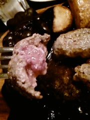 確か、以前Tacさんと行った時には、食中毒の問題だったか、狂牛病の問題だったかで、レアになってるハンバーグは無かったと思うのですが。