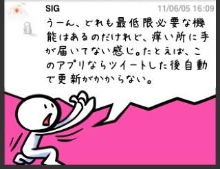 - うーん、どれも最低限必要な機能はあるのだけれど、痒い所に手が届いてない感じ。たとえば、このアプリならツイートした後自動で更新がかからない。 #