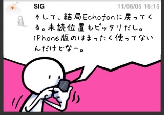 - そして、結局Echofonに戻ってくる。未読位置もピッタリだし。iPhone版のはまったく使ってないんだけどなー。 #