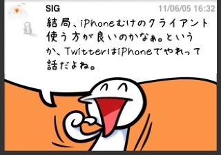 - 結局、iPhoneむけのクライアント使う方が良いのかなぁ。というか、TwitterはiPhoneでやれって話だよね。 #