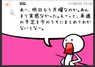 - あー、明日もう月曜なのか。あんまり実感なかった。えーっと、来週の予定を今のうちにまとめておかないとなー。 #