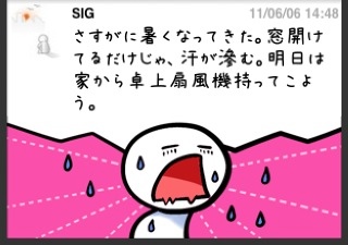 - さすがに暑くなってきた。窓開けてるだけじゃ、汗が滲む。明日は家から卓上扇風機持ってこよう。 #