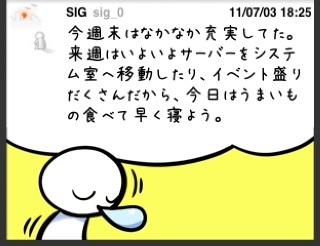 - 今週末はなかなか充実してた。来週はいよいよサーバーをシステム室へ移動したり、イベント盛りだくさんだから、今日はうまいもの食べて早く寝よう。 #