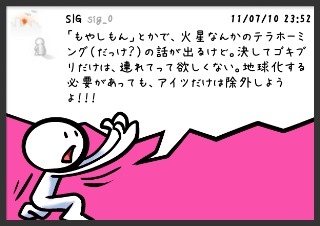 - 「もやしもん」とかで、火星なんかのテラホーミング(だっけ?)の話が出るけど。決してゴキブリだけは、連れてって欲しくない。地球化する必要があっても、アイツだけは除外しようよ!!! #