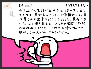 - 売り上げの集計が出来る元のデータは出してるのに、集計もしてくれ!と依頼がくる。事務員さんで出来るだろうに。。。と、愚痴りながら、ふと横を見ると、システム顧問(外部の会社の人)が売り上げの集計をやってて、納得。この人がやってるからかー。 #