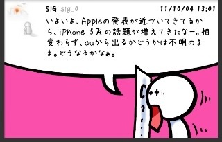 - いよいよ、Appleの発表が近づいてきてるから、iPhone 5系の話題が増えてきたなー。相変わらず、auから出るかどうかは不明のまま。どうなるかなぁ。 #